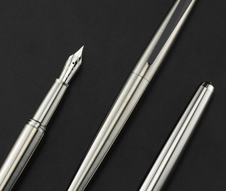 The whole pen is finished in a brushed texture and the original logo of HERO-100, an italic number 1 circled by two 0 in a way like sputniks flying around the earth, was engraved on the top of the hood. With a design like this, this notoriously famous model would never be perplexed by the problem of cracking hood and looks neat.